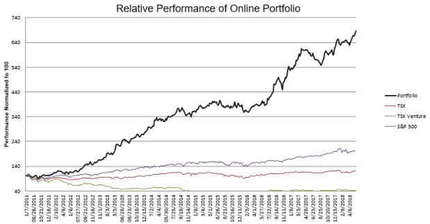 If you do the math, the move in the Canadian dollar has added about $25,000 to the tracking portfolio totals since the beginning of March. So I’m looking somewhat better than I actually deserve (which is quite the opposite of last spring, when I looked like a schmuck as the CAD rose some 15% in a few months!).