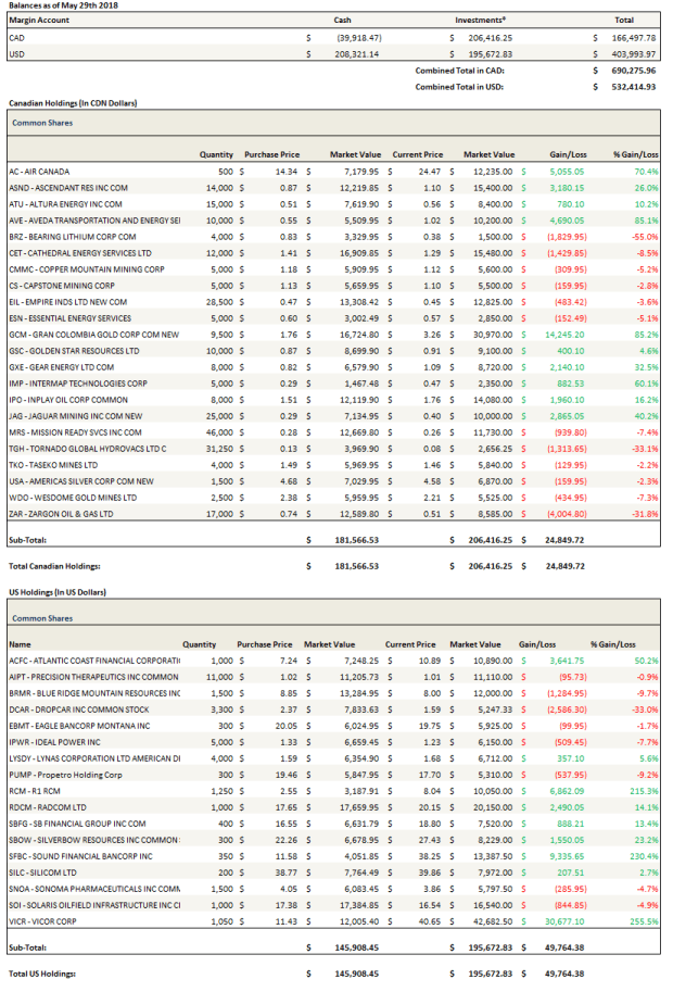 With the Trans-mountain decision out of the way I might look at buying some of these names back. But I think I will wait until after the Thursday numbers (delayed a day because of Memorial day) come out before doing anything.