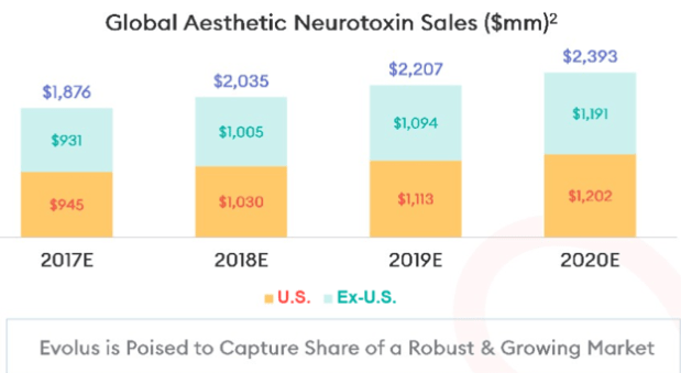 Evolus said in the conference call Monday that their goal is to be #2 in the cosmetic neurotoxin market. That implies that they are anticipating at least 20% of the US market. So $200 million. That’s only the United States.