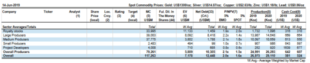 It looks to me like there is a big variation between the larger cap stocks and the smaller ones. Take the following table from BMO, which is looking at that net present value (NPV) of large, medium, small producers and developers at $1,300/oz gold.