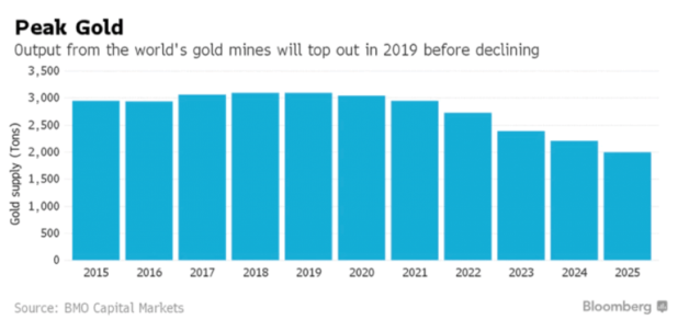 The natural consequence is that we should see a drop in gold supply. There are analysts forecasting this to begin this year.