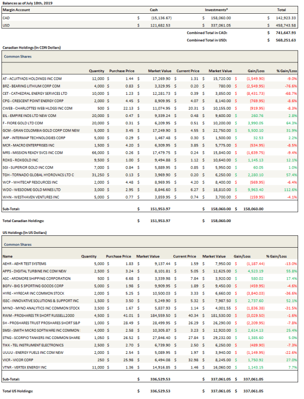 While the prior few months were characterized by performance that was better than it should have been because of the fall in the Canadian dollar, the last month and a half has seen the opposite. My portfolio has done reasonably well, particularly the gold stocks, but I am about flat because of Canadian dollar strength.