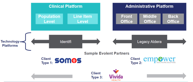 There are really two connected platforms. The first, called Identifi, handles the clinical side , while the Aldera platform handles the administrative side. The platforms can be integrated and customers that use either or both.