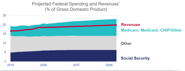 Evolent provides the following slide in their Investor day. It illustrates the relatively flat revenue available from the Federal government (from taxes) and the increasing costs of Medicaid, Medicare and other government health programs.