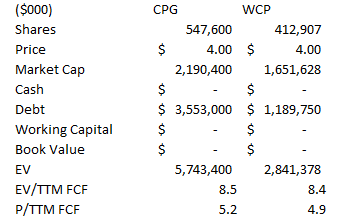 I understand that and will keep this position, like all my positions right now, small. But Canadian oil equities are compelling from a value point of view. Consider the tables of two that I decided to wade into, Crescent Point and Whitecap.