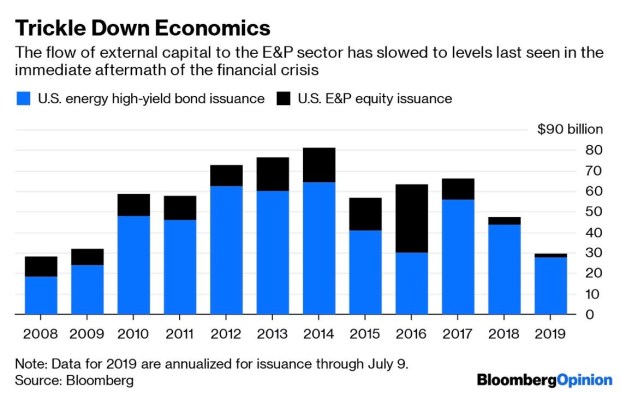 Both equity and high yield bond issuance of E&Ps continues to shrink. Private equity, which has been going into the secondary basins and buying up fringe lands, appears to be stepping back and in some cases looking to sell.