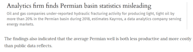 There has also been news that the Permian statistics aren’t quite as compelling as thought, that a lot more wells have been drilled then originally thought, and therefore that the efficiency of the overall field is not as strong as maybe it was originally thought to be.