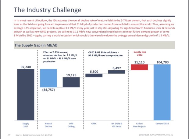 Thus, it has been that even though the medium term supply gap looks fairly constructive, the believe has been that shale and in particular Permian production will make up any short fall.