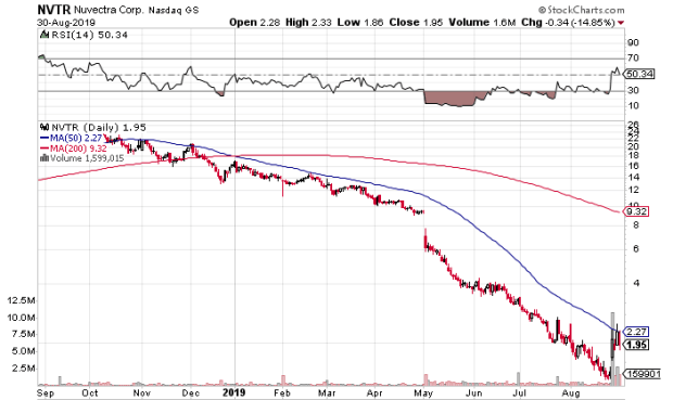 The competition trades at a significant premium to Nuvectra. Nevro, which is the only pure play competitor, trades at nearly 7x 2019 sales and that is on declining revenue. Boston Scientific and Medtronic, which are much larger multi-product companies with competitive SCS offerings, trade at 6.2x and 5.1x revenue respectively. Nuvectra trades at under 1x revenue based on their market cap and well under 1x if you include their net cash position.
