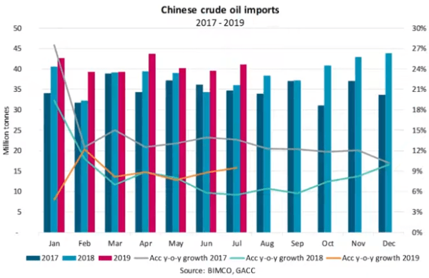 Chinese crude imports this year have been especially strong.  This even as the Chinese economy has, by all accounts, been relatively weak.  What gives?