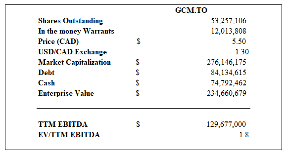 My largest gold stock position is Gran Columbia.  It still seems to be the cheapest of the bunch if you ask me.