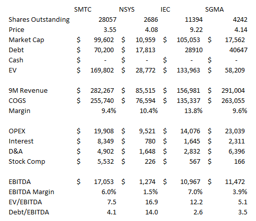 SMTC competes against companies like Keytronics, Sigmatron, Benchmark, as well as the larger, well known names like Flex, and Plexis.