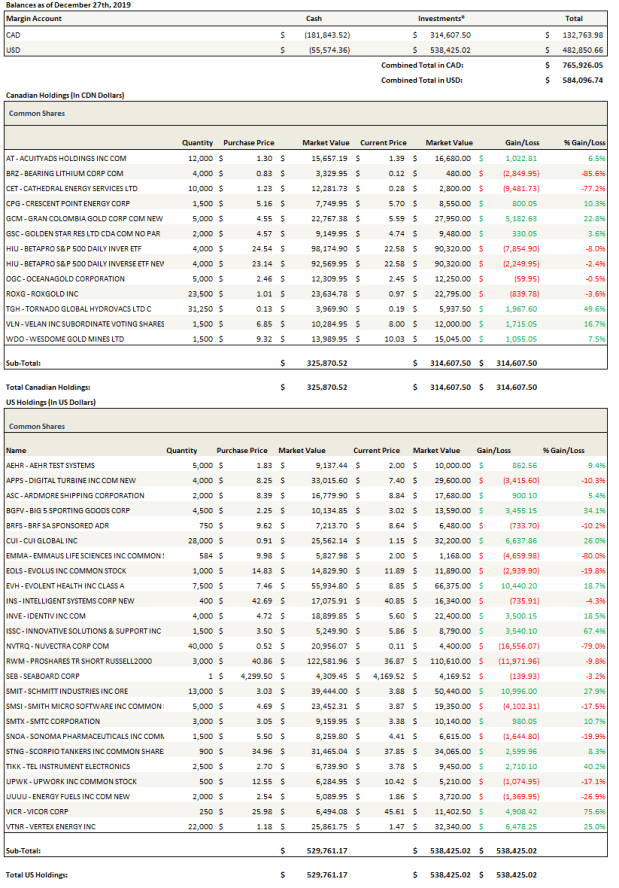 Gold stocks are making a move.  I’m holding the same one’s I have been for a while and added a couple of others.  I added smaller positions in Golden Star Resources and Leagold as it became more likely that gold was finishing its consolidation.  I also bought back Wesdome (which I never should have sold).