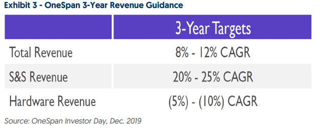 OneSpan reminds me a bit of Vonage. They are taking a declining hardware business and trying to lever it into a software platform by acquisition. The one (important) difference here is that OneSpan is probably more like a leader in the space while Vonage is always playing catch up to Twilio, RingCentral and the like.