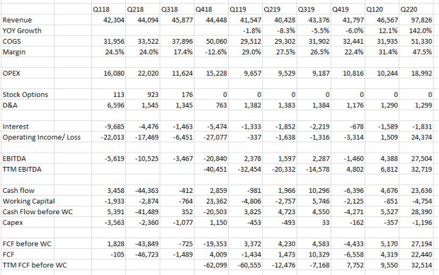 - SG&A was quite a bit higher too though – up from $2.5mm to $7.9mm yoy in Q220