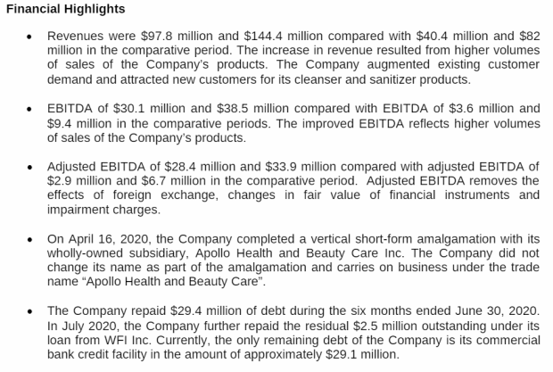 - they kind of allude to what is going on in Q220 MD&A: The Company attracted new customers and augmented existing customer demand for its cleanser and sanitizer products