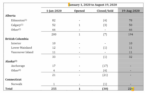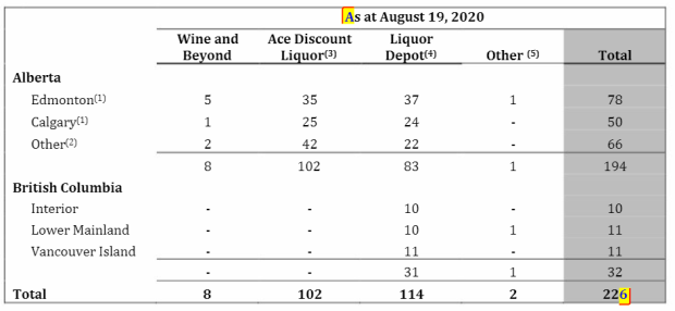 - our Ace banner has 102 stores, whatever it is, and Liquor Depot is 79 now. So — and Wine and Beyond, which is our large-format store, which does have luxury products but it’s not a luxury store, its margins are more or less the same as Ace