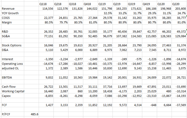 - Its really strange to me that Q220 cash flow was as bad as it was given results are basically similar yoy (and they are growing of course)