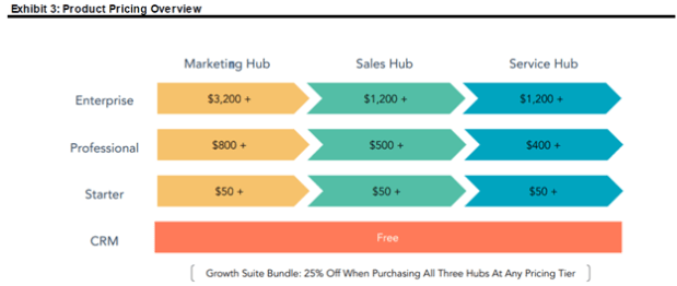 - offer a free CRM product, cheap starter for marketing, sales, service hub: