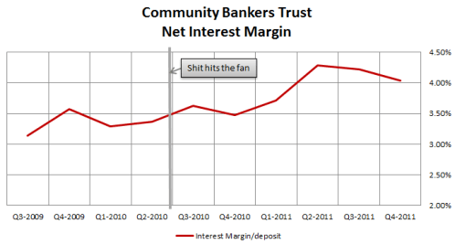 On the negative side the company struggled in much the same way as Community Bankers, posting a lower Net Interest Margin quarter over quarter.