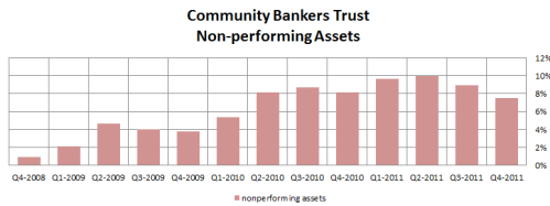 Xenith is aggressively growing their loan book in Virginia, both through transactions like the above, and organically through new loans. They have done a good job of making loans, and so far nonperforming assets are not a significant threat.