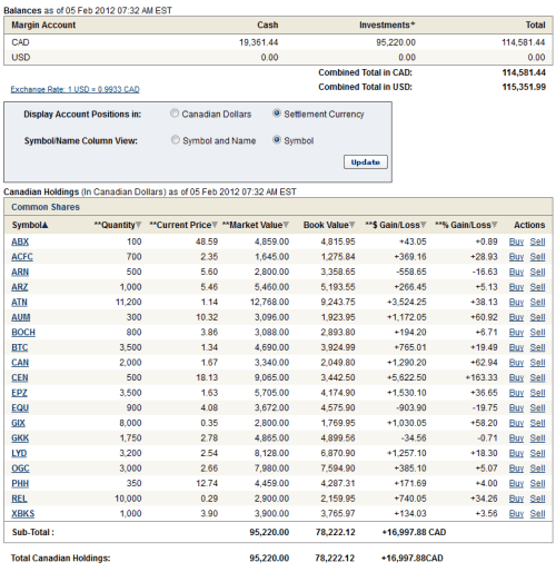 Unfortunately there is not much I can do. Argonaut is $8 and Aurizon is $5. Most of the move in AR has been done. I’m not going to chase it at this point. Aurizon is probably much akin to OceanaGold, which I have played much more intelligently by buying the stock at $2.20 and selling it at $2.70 again and again. With Aurizon those numbers are probably around $5 and $6. Indeed I did sell some Aurizon around the $6 range the last time it was there but I think that its time to recognize that without a strong feasibility study for Joanna, that $6-$7 is about all you can expect here.