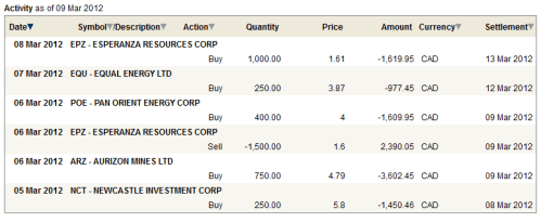I have owned Atna Resources through the slaughter and ithas held up relatively well. I added to that position yesterday after it became clear it was reversing from its lows. I also added a position in Newmont. This could be considered to be a trade. Newmont at $44 does not seem like a terribly risky endeavour to me. Finally I added to my position in Golden Minerals and I added a position in Lydian International. Of interest, Lydian did not reverse higher as strongly as many of the other juniors. I suspect this is just a short term anomoly. At any rate I will be monitoring all of these positions closely and if the reversal fails I will likely be bailing out of Newmont, Lydian and probably Golden Minerals (though at $5.30 its hard to see this stock getting very much cheaper).