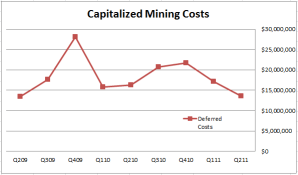 The key point to be made by the graph is that while cash costs per ounce increased a whopping 25% quarter over quarter, total mining costs, as shown in the graph, increased 6%.