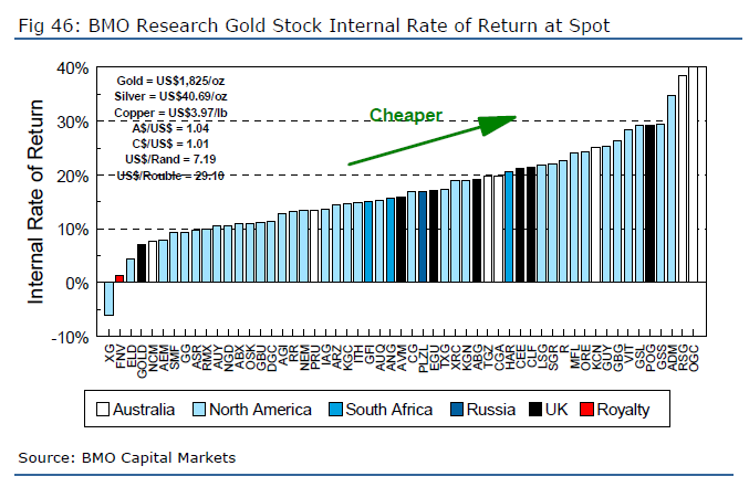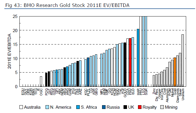 BMO wrote a great report on the gold miners a week ago. OceanaGold was included in the comparisons. Below I have cut and paste a couple valuation metrics that BMO used in a recent report on precious metal miners. These comparisons show clearly just how undervalued OGC is relative to its peers.