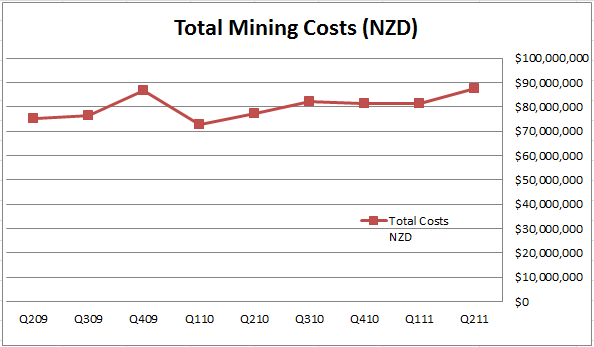 The majority of the miss from the quarter can be attributed to three reasons. First, the New Zealand dollar appreciated far further than I think anyone has expected. Second, the mine plan is causing the company to expense more costs. Third, they lost some of their underground workforce.