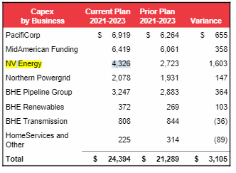 Berkshire just bumped up NV Energy’s capex plans by $1.6 billion.