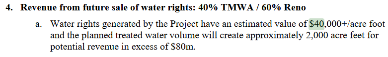 But most importantly, in the minutes it shows the assumptions used for the project; that they are using at least a $40k per AF number for what that water is worth: