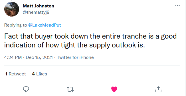 I suspect the amount Vidler gets for subsequent credits will be higher than what they got here (you can see that the January option is at $450/LTSC). But even if they got $400/LTSC for all the remaining Harquahala credits that would be $100 million. The Phoenix one’s have to be worth more, so I’d guess that can bring in another $14 million or so there.