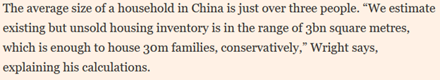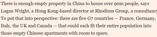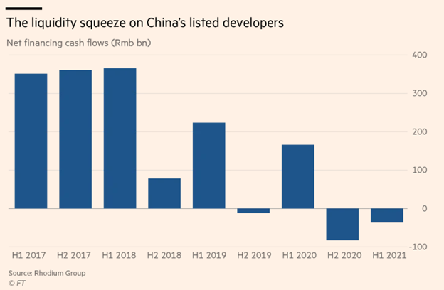 China is unquestionably squeezing developers to try to reduce the investment made in new properties. China drafted rules in the summer of 2020 – so not that long ago – that constrained how much leverage developer could take on.