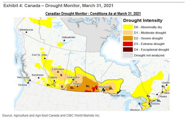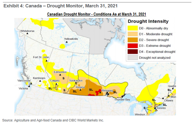In Brazil there are drought conditions that are not looking good for their corn crop. And in Canada, I can attest to the fact that moisture this year has seemed low.