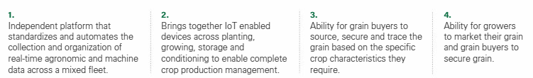 FarmersEdge is really a monitoring and predictive tool for managing the crop in the field. Seed selection; precision planting; precision application; machine automation; soil probes, satellite imaging and telematics data used to determine plant health and problem areas.