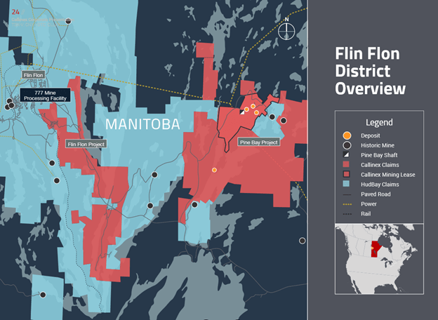 - Callinex claims are right around the Hudbay 777 mine – they are maybe 10km to the east of Flin Flon