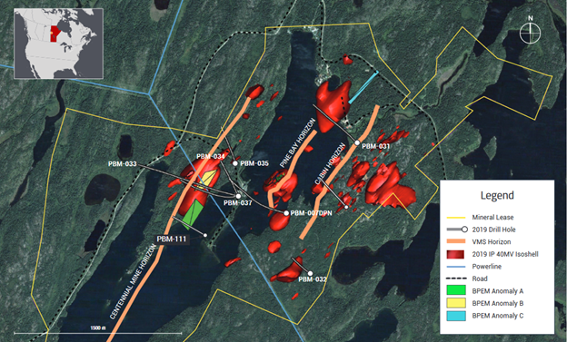 - PBM-111 – 3.09% copper, 0.75 g/t gold, 13.35 g/t silver, 1.88% zinc over 2.96m