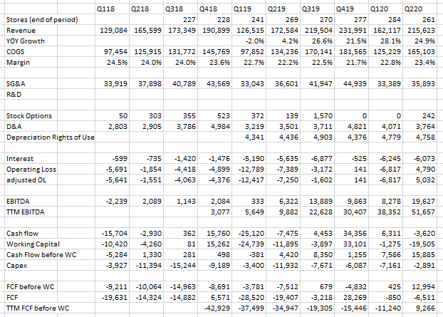 - their poor cash flow in Q220 is kind of weird – everything yoy on the income statement looks comparable to Q219 but for some reason they burned through $23mm of cash before working capital.
