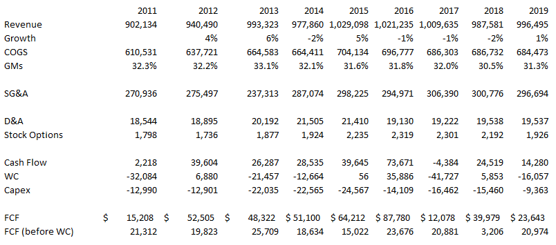 I have been surprised that Big 5 has not performed better. One reasonable bear case I can think of is that this year will be a flash in the pan. I looked back at the historical results to see how Big 5 has performed over the last 10 years.