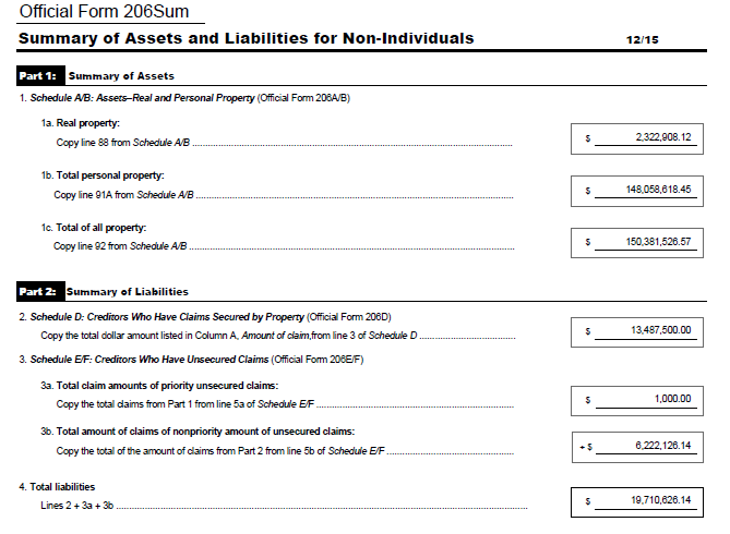 In fact, in an argument filed by the unsecured creditors, the idea was pushed that assets far exceeded debt (thanks to @Fbushek for pointing out this excerpt as well as a couple of others):