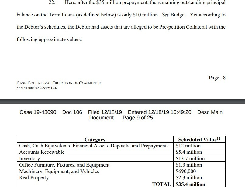 Now it must be said that the unsecured creditors were making an objection about whether the secured creditors cash collateral lien should include IP. So they were trying to paint a rosy picture.