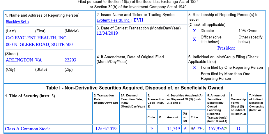 The last data point is this. On Thursday there were two insider buys. The first by Frank Williams, the CEO, and the second by Seth Blackley, the President.