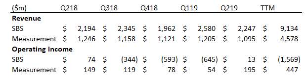 While the SBS business has been the bigger of Schmitt’s two business lines, the Measurement business is in many ways the better of the two. The SBS business has long struggled with profitability while the Measurement business has not.