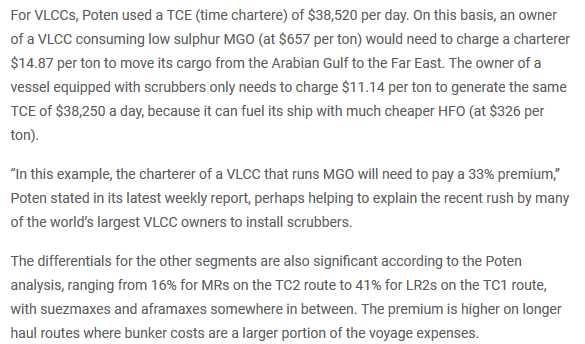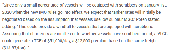 My tanker trade is expanding again to being long IMO 2020. I listened to Ardmore Shipping’s Investor Day. They had Andrew Lipow on as their expert. He painted a very interesting picture – one of increased refinery runs, expanding crack spreads, and large discounts for heavy oil. By coincidence I talked to an oil trader at a large refiner this weekend and he mostly agreed with the assessment.