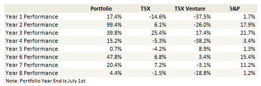 Apart from that I’ve done okay, but my performance has again been skewed (positively) by the weak Canadian dollar. I mentioned this last update – again these last 8 weeks I gained a full 1% of performance from the Canadian dollar weakness. Unfortunately in my actual portfolio I am hedged on currency to a large degree so this is misleading.
