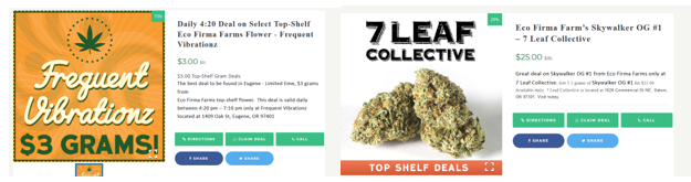 Eco Firma sells the flower and a rolled cigar-like smoke that they call Pachecos. They list 41 dispensaries across Oregon on their website and have been selling the 19 strains they grow since 2012. Eco Firma has won a number of awards for their strains: