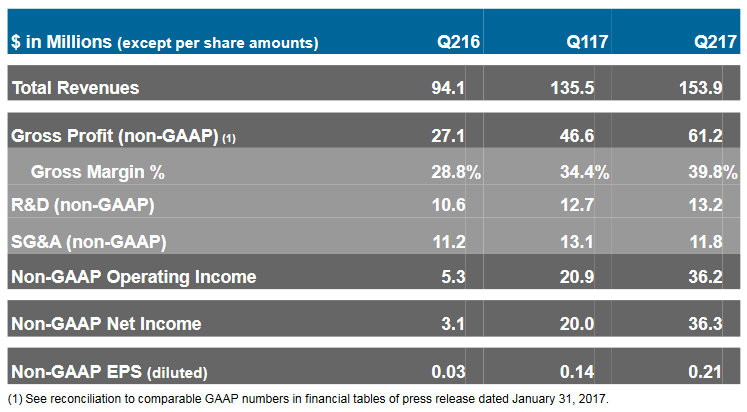Its worth noting that the CFPX and QSFP28 will have lower average selling prices (ASPs) than the CFP, which could be a drag on top line revenue, but that margins for these products will be higher than the CFP, so the bottom line should improve.
