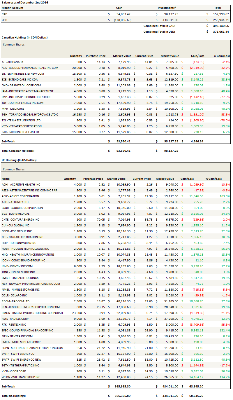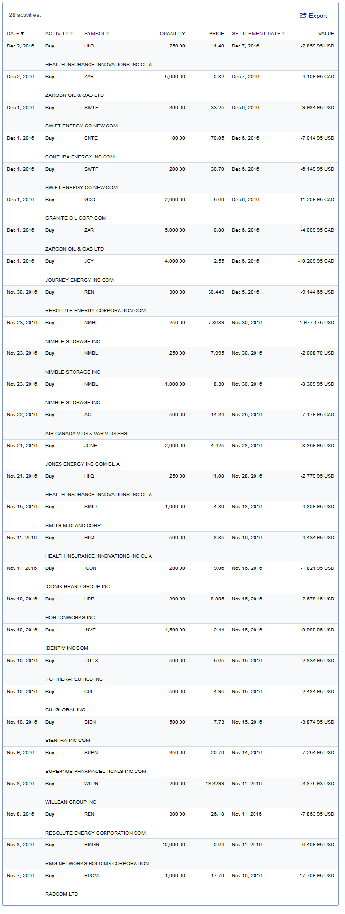 Heading into the OPEC meetings I owned small positions in a number of oil and gas stocks. After the agreement was reached I significantly ramped up those positions. As I wrote on the weekend, in the days following the OPEC meeting I added back Granite Oil (GXO) and added to Resolute Energy, Journey Energy, and Zargon Oil and Gas. But my biggest add was to Swift Energy.