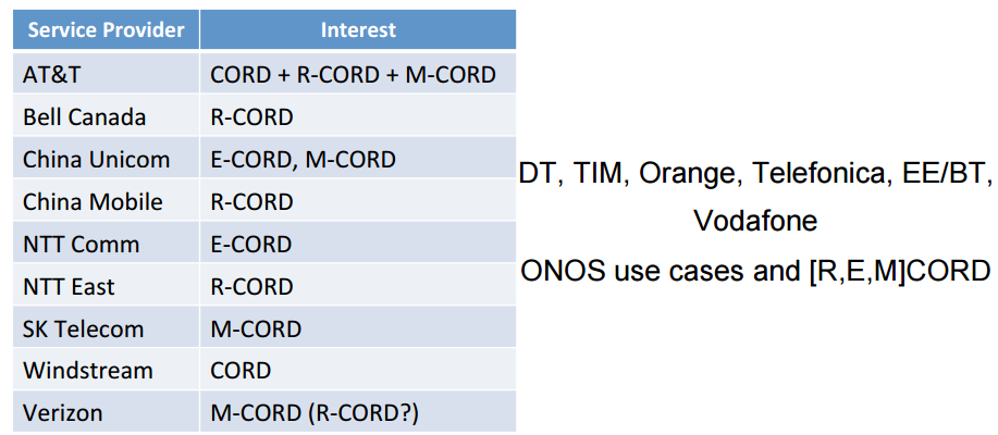 The mission of CORD is to advance an open source service delivery platform that combines SDN, and NFV, and elastic cloud services to service providers. Or said differently, the mission is to facilitate the replacement of telco central offices and the big, proprietary, expensive equipment that gets installed in them with new solutions that leverage data center economics and cloud flexibility across the entire network.